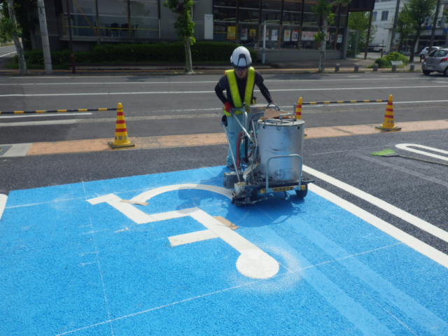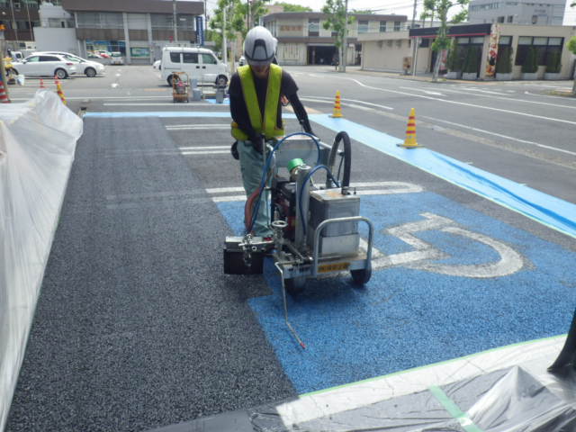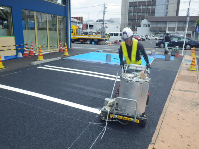 今回は店舗入り口変更に伴う駐車場の区画変更です。